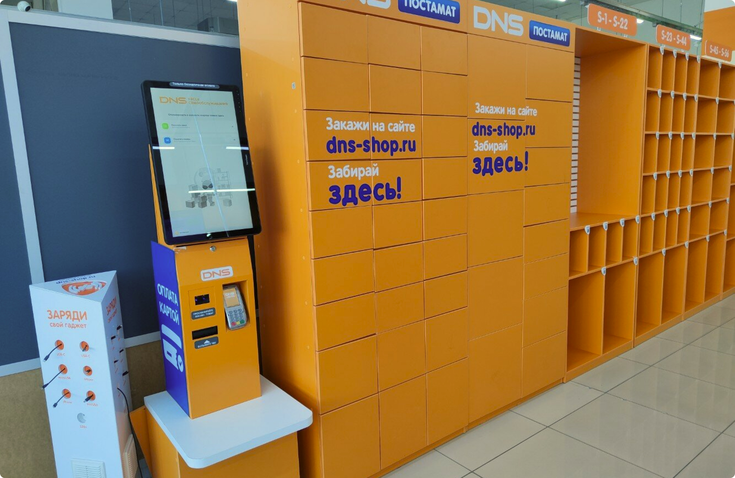 Постамат для выдачи интернет-заказов в магазине DNS. Застенчивые клиенты выдохнули!
