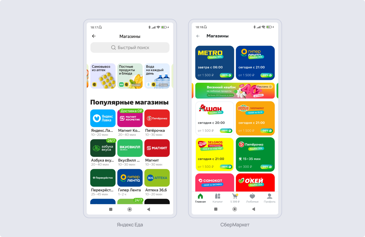 Бренды стремятся к непрерывной коммуникации с клиентом. Они расширяют свое присутствие за грани собственных сайтов и соцсетей, выходят на сторонние сервисы. У большинства популярных магазинов, представленных на «СберМаркете» и «Яндекс Еде» уже есть собственные приложения. Не смотря на это, они пользуются подобными сервисами доставки, чтобы расширить охваты аудитории.