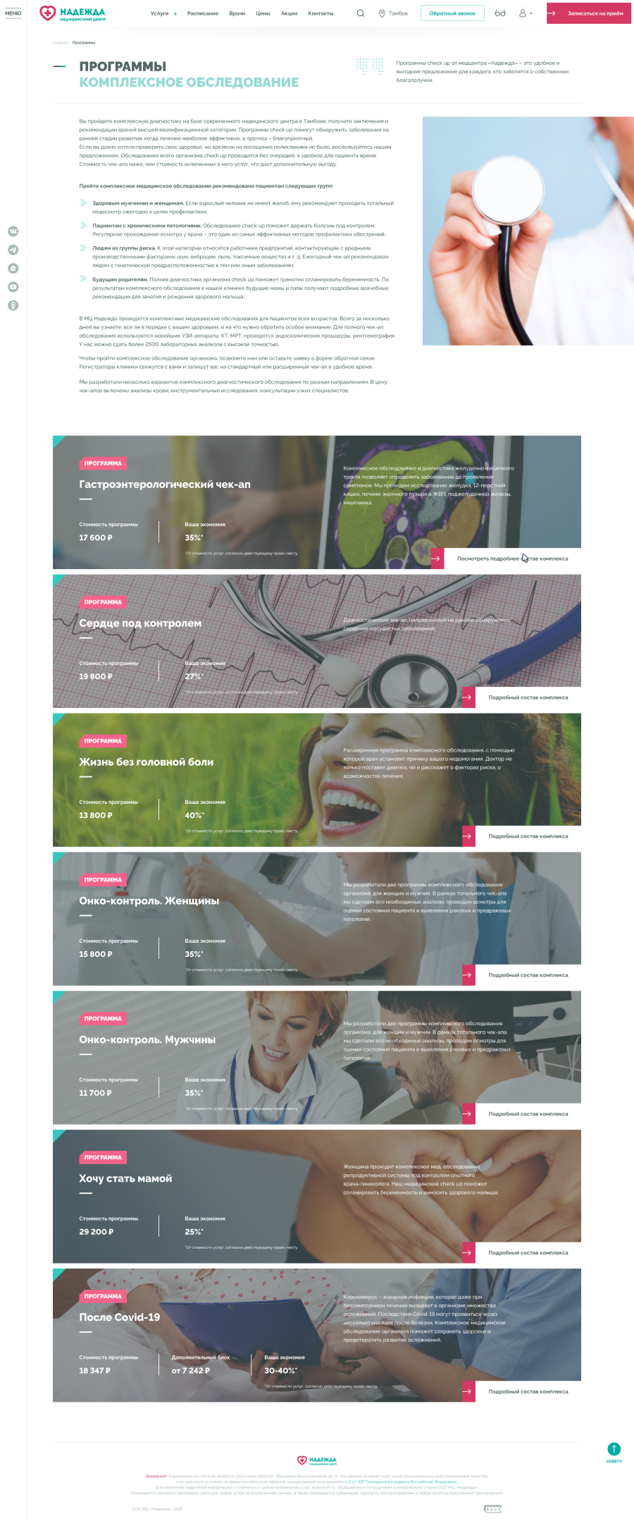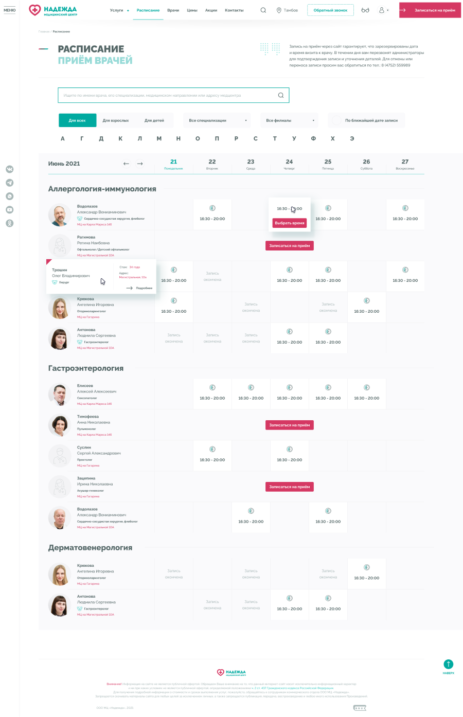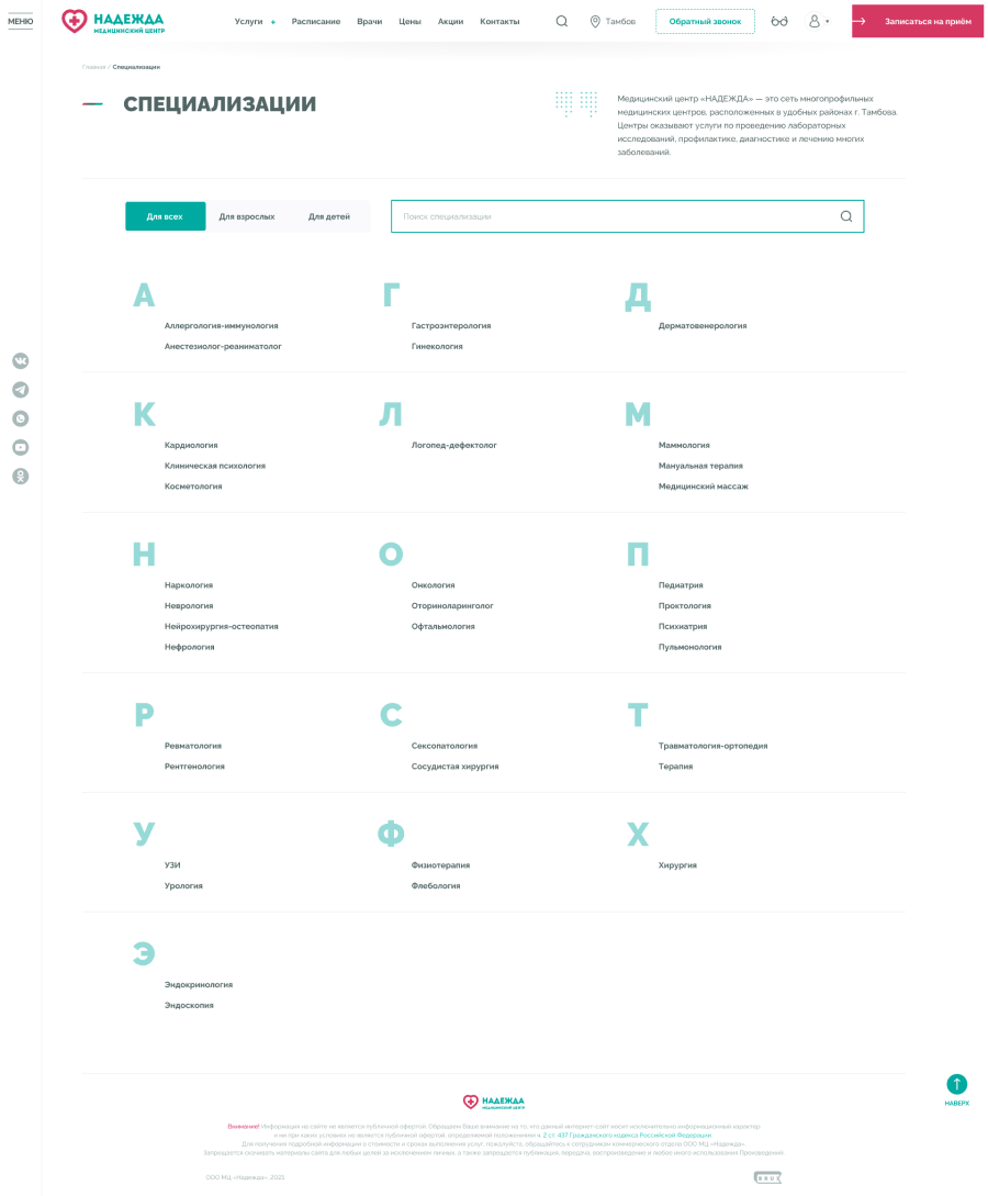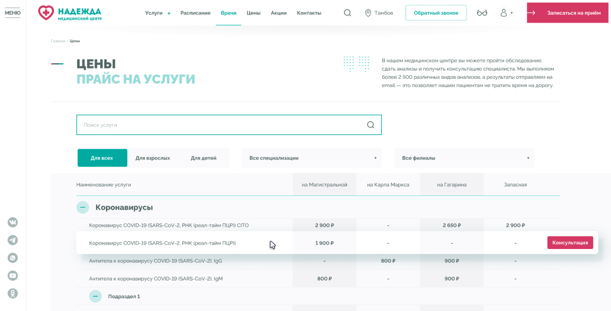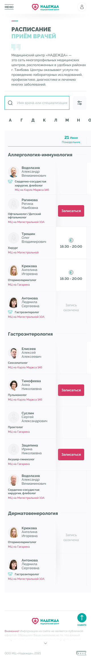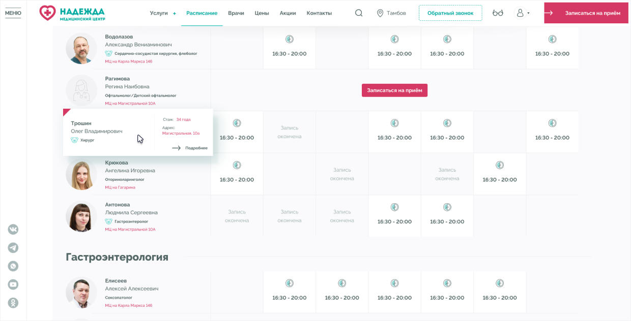 Медицинские центры «НАДЕЖДА» оказывают большой спектр услуг по проведению лабораторных исследований, профилактике, диагностике и лечению заболеваний.Проблема. Медицинский центр не успевает обрабатывать 30% входящих звонков, а через сайт записываются не более 300 пациентов в месяц.Задача. Сократить количество звонков и увеличить количество записей через сайт.Решение. Разработать интуитивно понятный интерфейс нового сайта и улучшить пользовательский опыт для записи на приём.