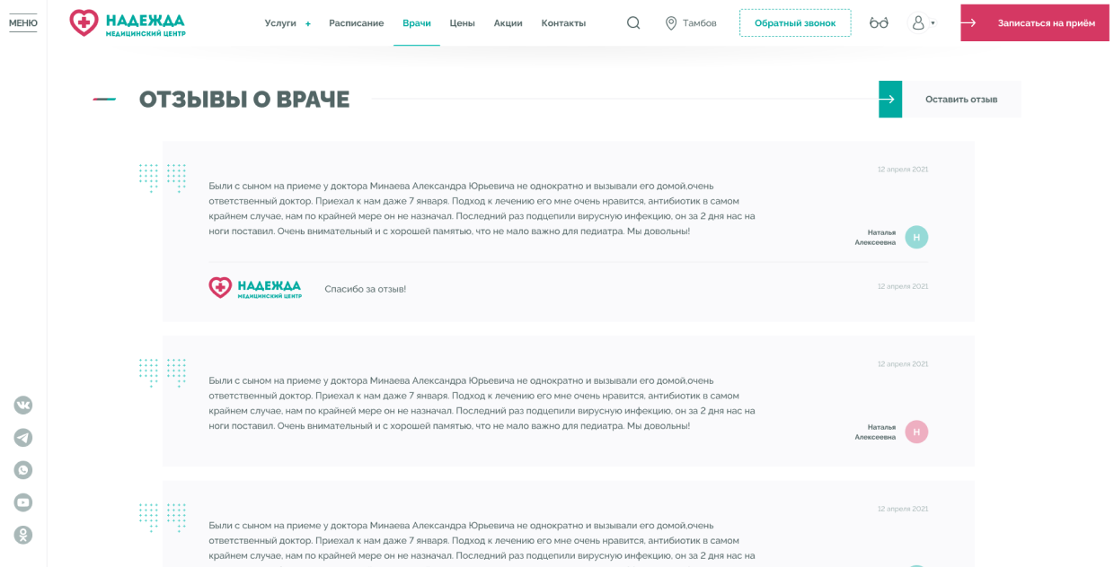 Страница отзывов
