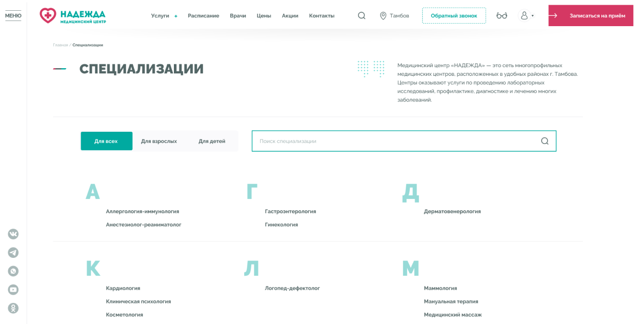 Страница специализации