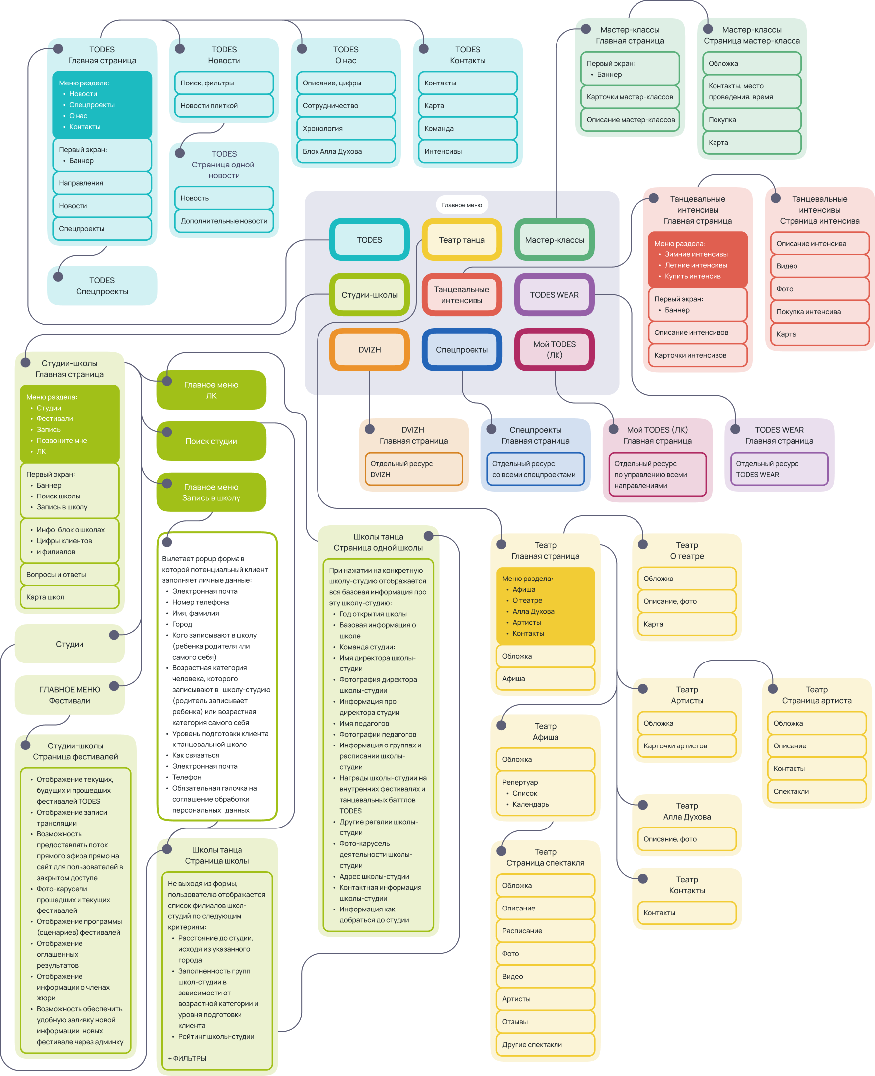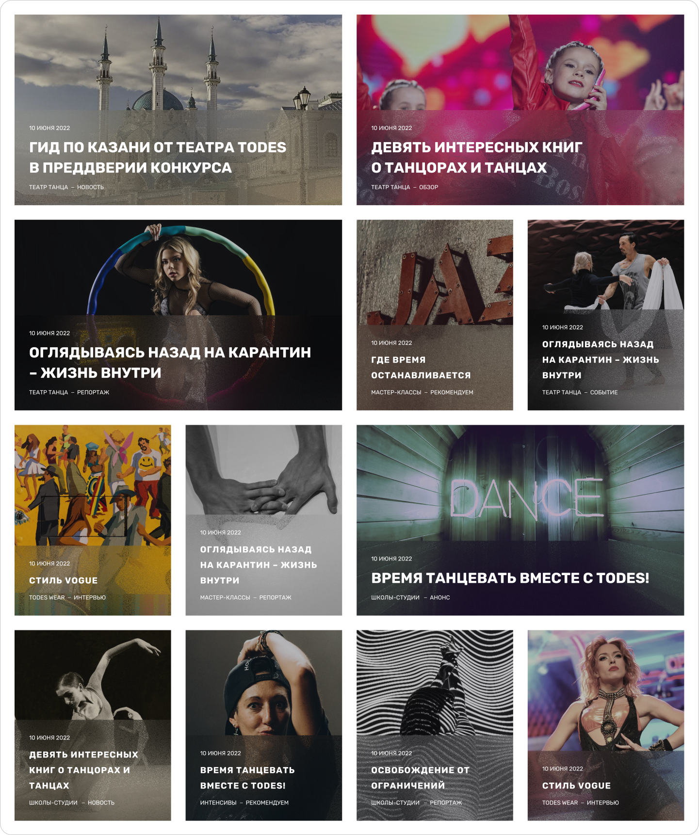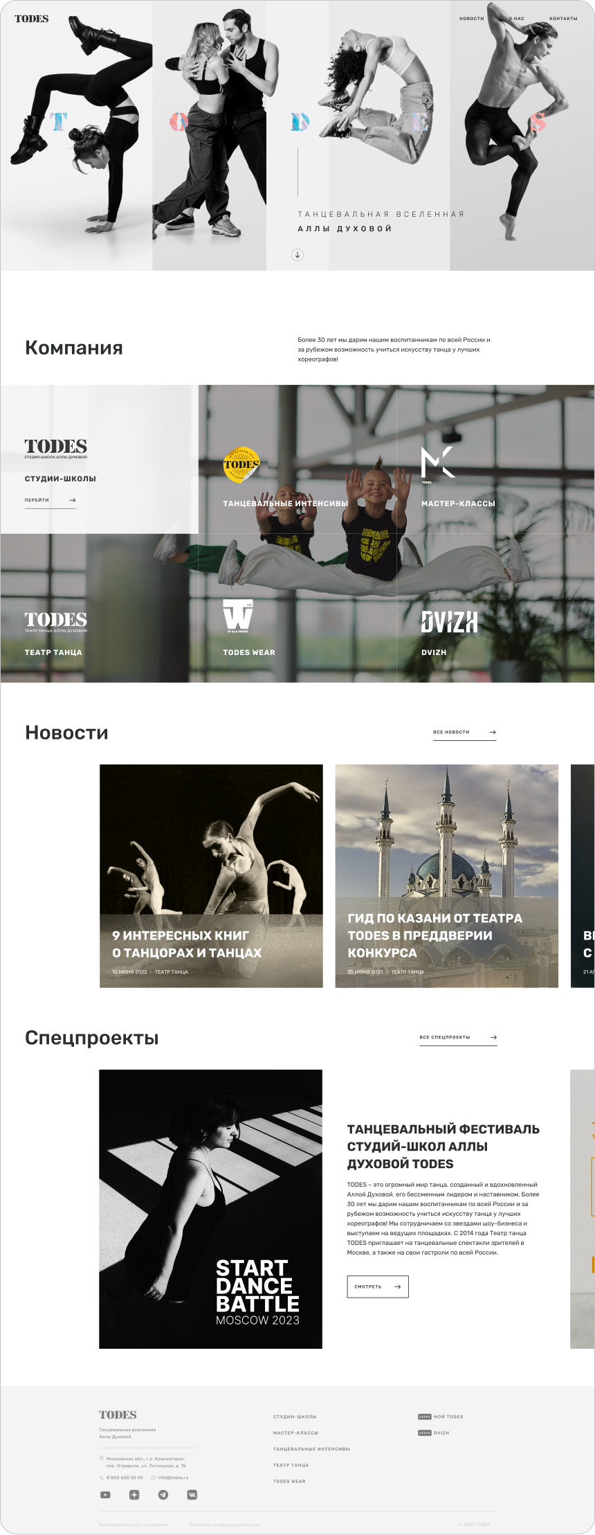 Для каждого направления требуются свои блоки, чтобы представить информацию в нужном формате. Например, для гастролей могут быть таблицы с расписанием, для фотогалереи — фотографии, а для текстовых блоков — акценты на разных аспектах.