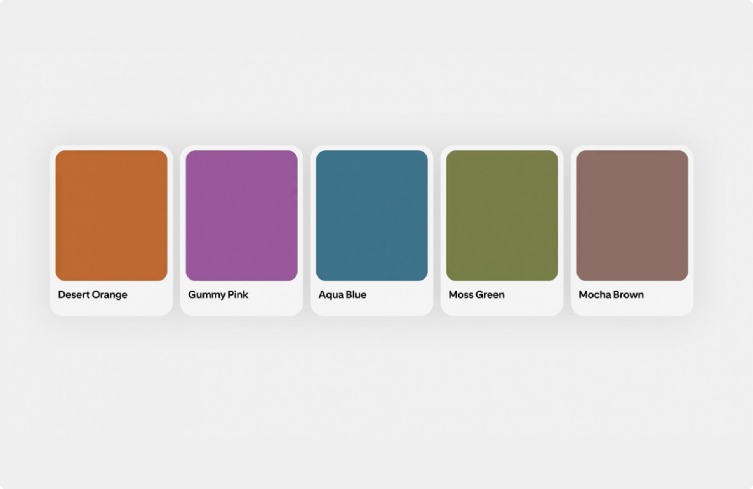 Популярная визуальная соцсеть Pinterest, проанализировав тренды платформы, выделила палитру года из пяти ведущих цветов: Desert Orange («Пустынный оранжевый»), Gummy Pink («Розовый жевательный мармелад»), Aqua Blue («Синяя вода»), Moss Green («Зелёный мох»), Mocha Brown («Кофейно-коричневый»). Эта палитра продолжает тему натуральности и приземленности.