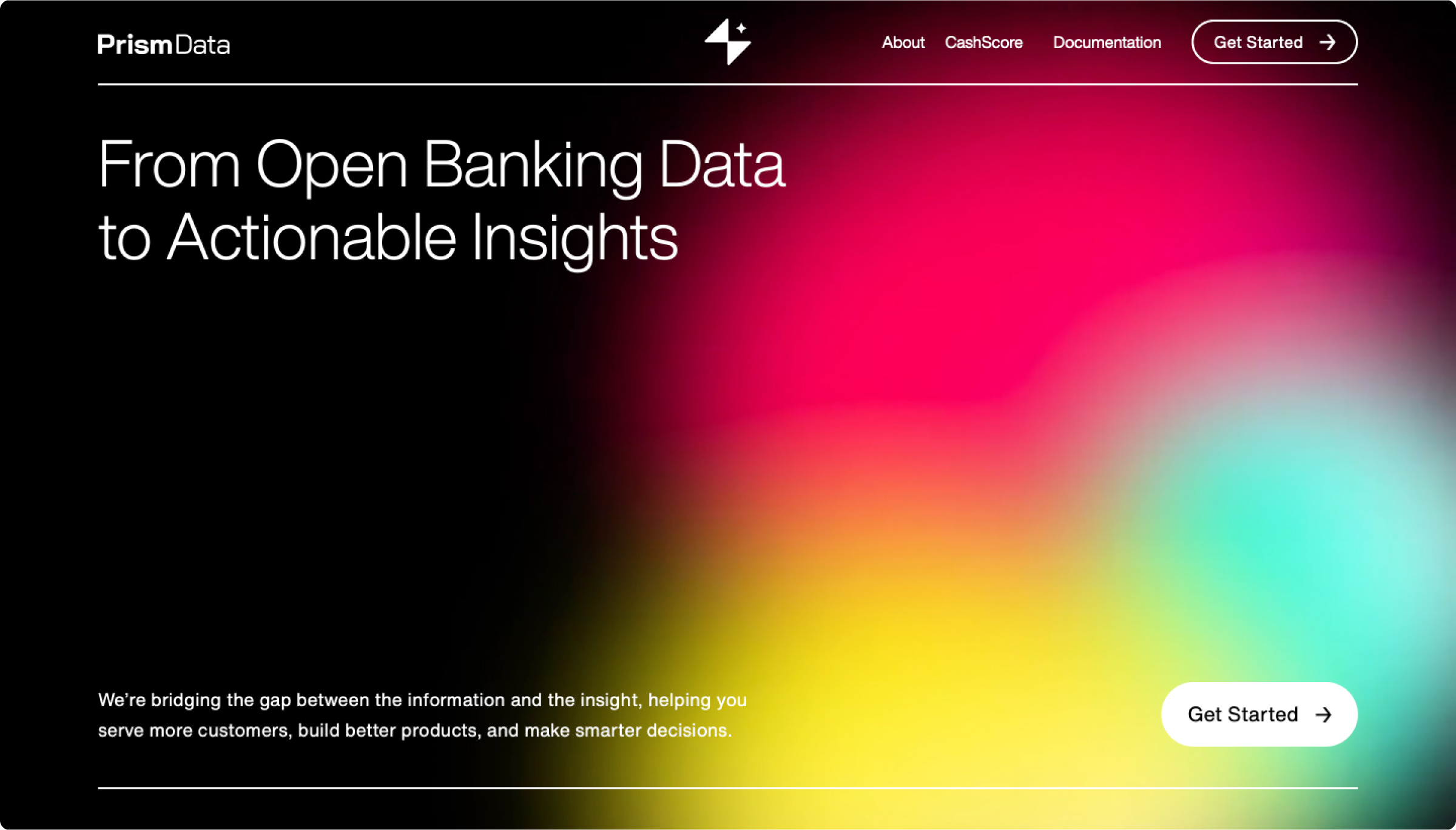 Платформа анализа финансовых операций Prism Data. Обратите внимание, как градиент подсвечивает кнопку.